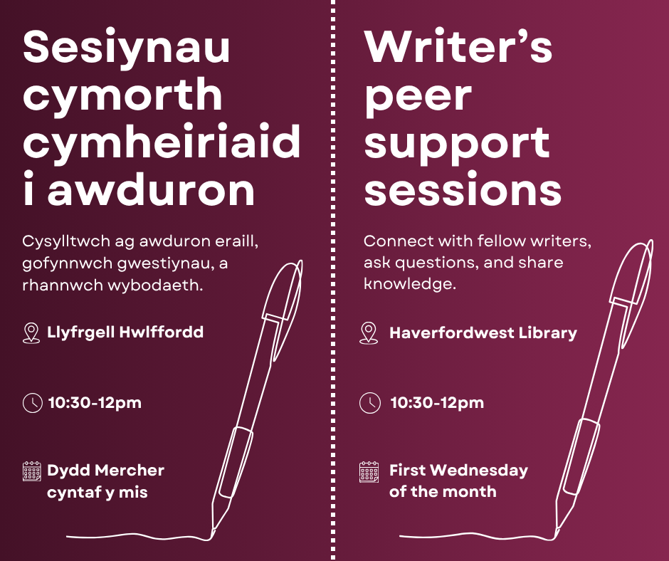 Writer’s peer support sessions | Sesiynau cymorth cymheiriaid i awduron (Haverfordwest | Hwlffordd)